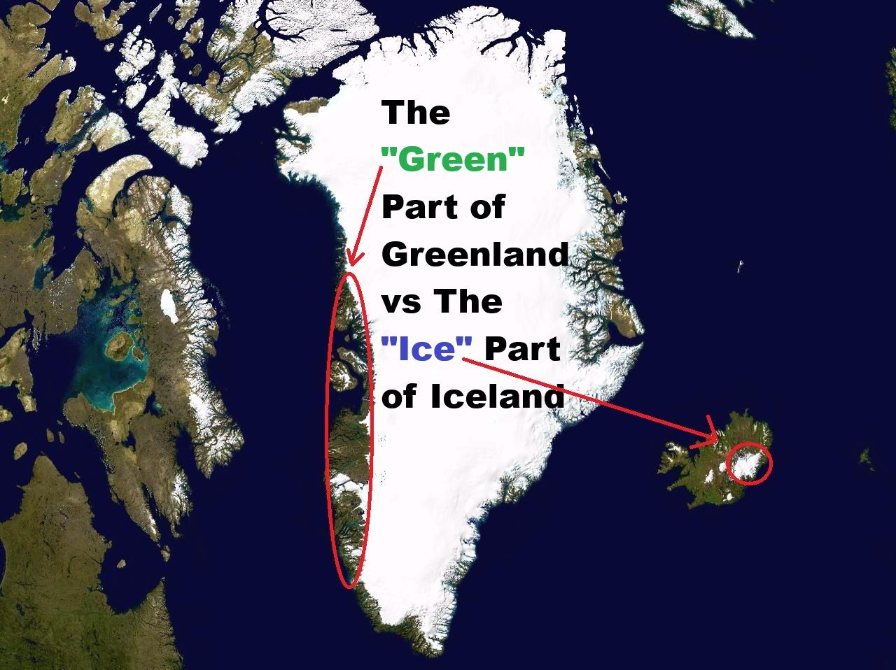 2. The Green Part of Greenland vs The Ice Part of Iceland