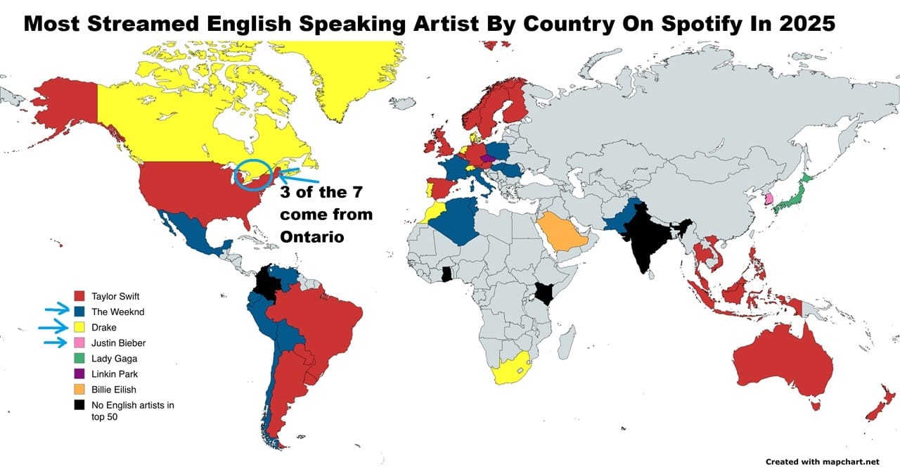 Most Streamed English Speaking Artist By Country On Spotify In 2025