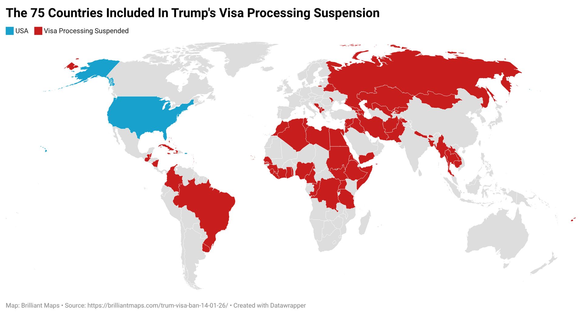 The 75 Countries Included In Trump’s Visa Processing Suspension On 14 January 2026