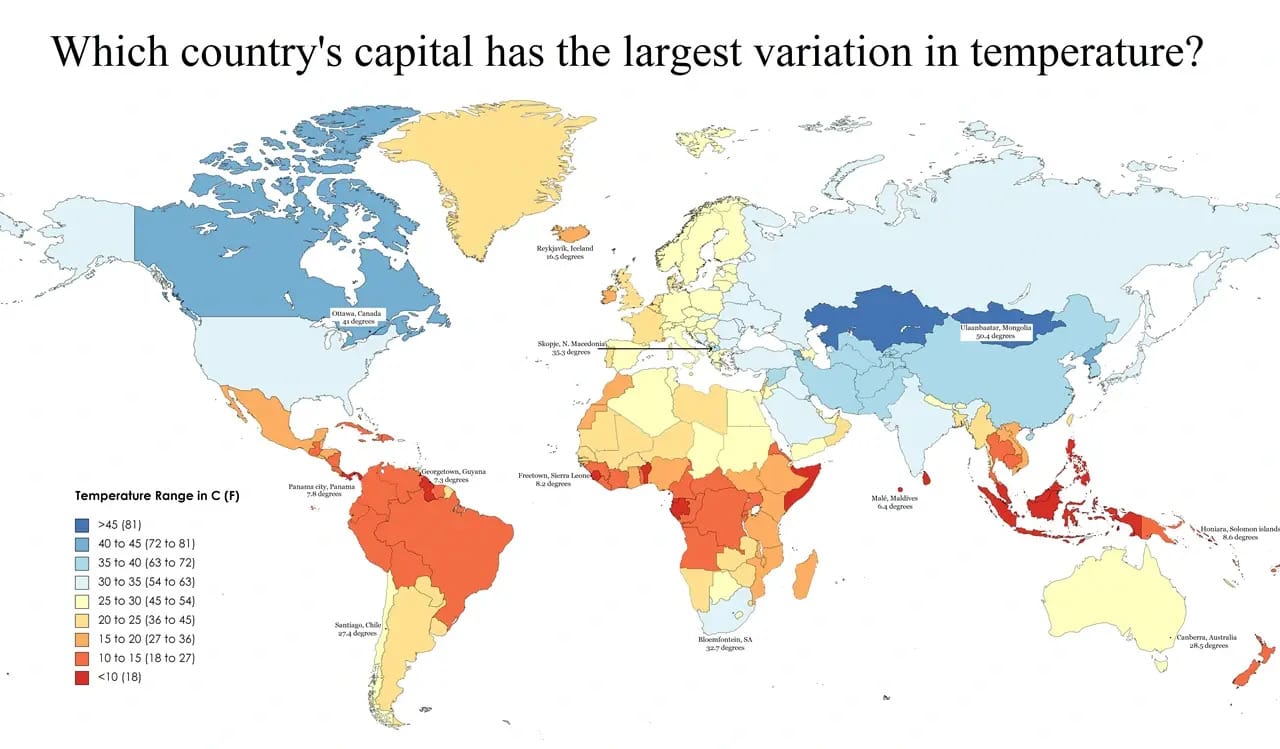 Which Capital Cities Have The Biggest Average Temperature Difference Between Summer & Winter