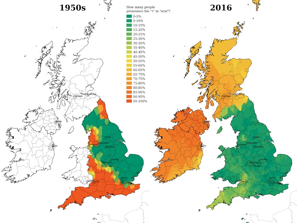 How Many People Pronounce The R In Arm In 1950 vs 2016