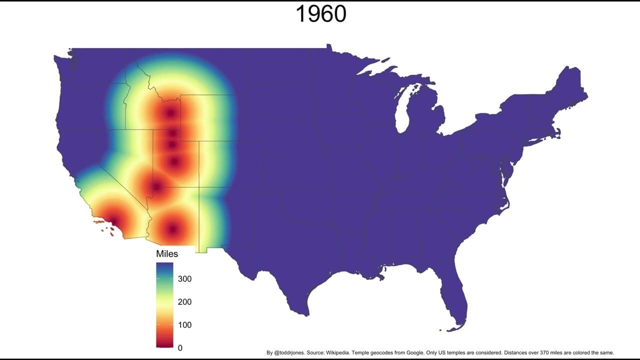 Watch the Expansion Of Mormon Temples Across the US