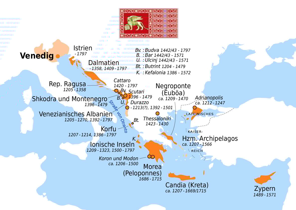 Anachronistic map of Venetian colonies (c.1000-1797)