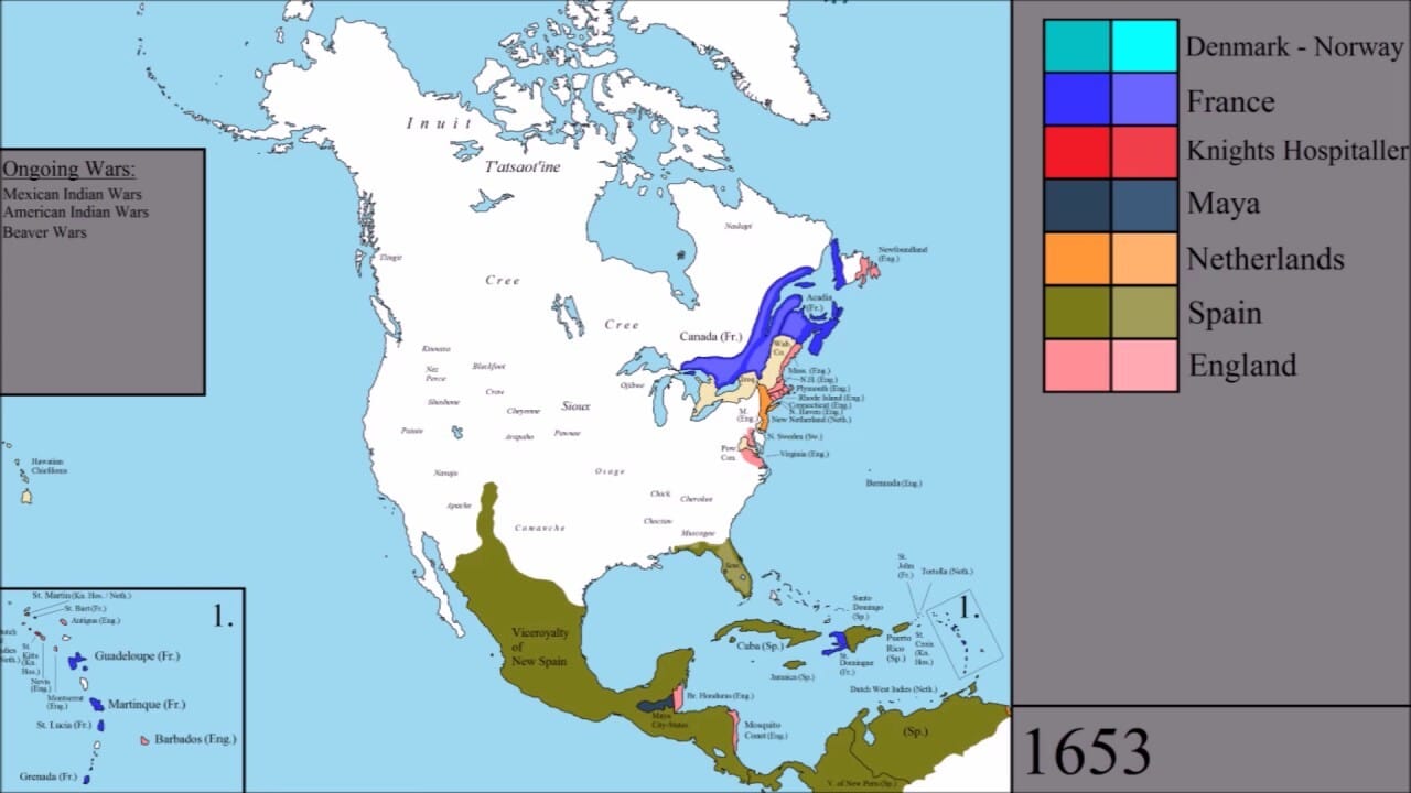 Map of North American History Every Year 1500 BC to 2000 AD