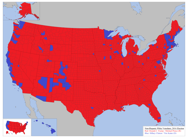 How Whites Voted In The 2016 US Presidential Election by State & County
